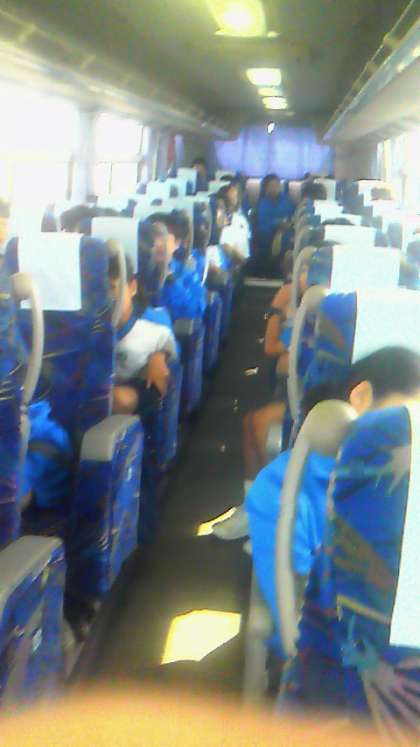 4号車です。一部の生徒は寝ていますが、まだまだ元気にしゃべり続けています。バスは、まもなく阪神高速湾岸線石津出入口を通過します。
