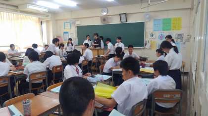 本日6限目の学活後半は、先日の校外学習を終えての「壁新聞作り」を行いました。今日は、班の中での役割分担をしました。