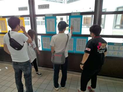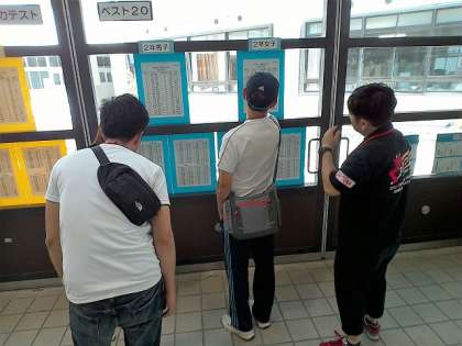 玄関ホールに掲示してある体力テストの結果。