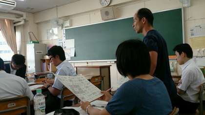 東中生が下校した放課後の教室で、若手研修が行われています。「東中をよりよくするために!!」をテーマに、今年度何をしていくのかを、熱心に議論しています!若手教員のアイディア、柔軟な発想が、東中全体の取り組みに発展していきます。