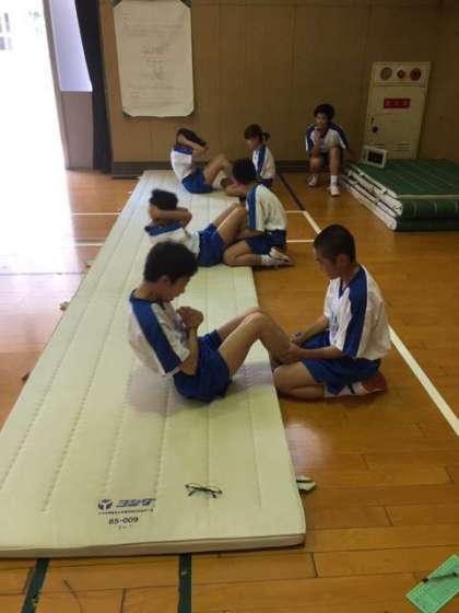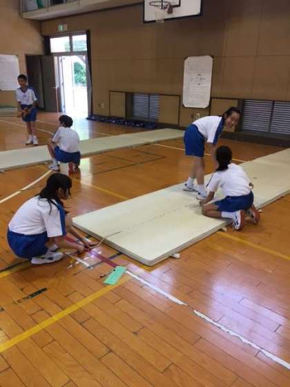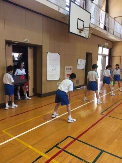 各テスト項目を班ごとに測定の補助、記録、必要器具の操作なども役割を決めてテストを実施しています。学び合いが良くできています。