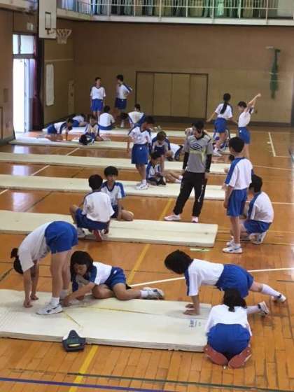 5時間目の1-2.3組の新体力テスト5項目の様子です。協力してテストが進んでいます。一泊移住の成果があらわれています。