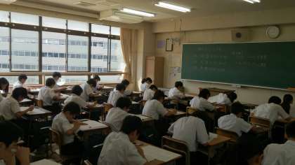 本日から期末テストです!1年生にとっては2回目の定期テストとなります。しっかりと勉強した成果を発揮してください!写真は1年生の国語の試験の様子です。