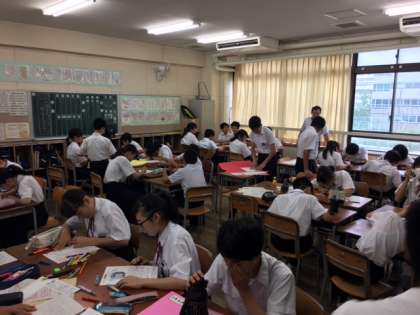 校外学習の壁新聞の完成を目指しています。1組と2組の様子です。