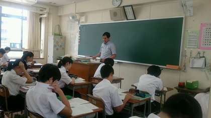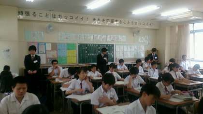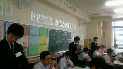 実習生の皆さんは、社会科の教員を目指しています。真剣に社会科の授業見学をされています。