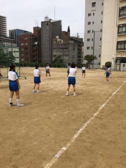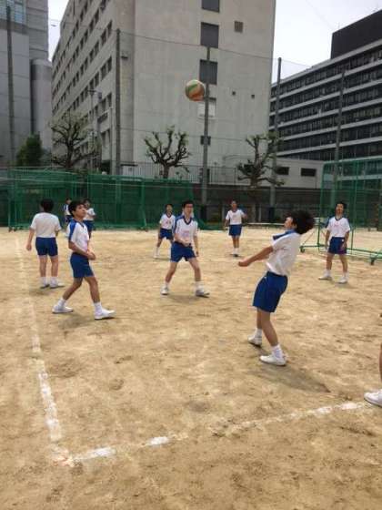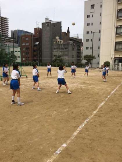 2時間目の3年5組の体育はバレーボールのゲーム練習でした。賑やかな声がグラウンドに響いています。