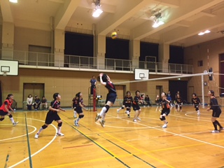 本日は東中学校にて、PTAバレーの保護者の方にお越しいただき、中学生チームと交流試合をしていただきました。