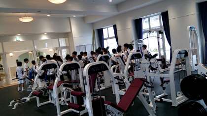 興国高校との練習試合の後、施設見学をさせていただいています。