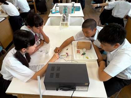 3限目、3年の理科の授業でイオン移動実験を行いました。