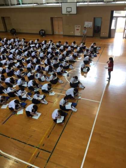 修学旅行の係別会議が終了したあとは体育館で全体のしおりの読み合わせを行なっています。「最高までの通過点、自分がつくる修学旅行」という30期生修学旅行の目標を達成するためには、この時間をいかに真剣に取り組むかだと思います。準備を怠らず明後日を迎えましょう。
