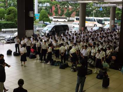 修学旅行実行委員が前に立ち、いよいよ出発式が始まりました。