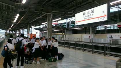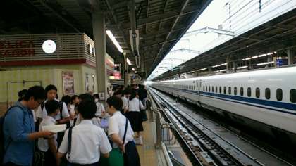 出発式が済み、新幹線ホームに移動しました。まもなく乗車です。