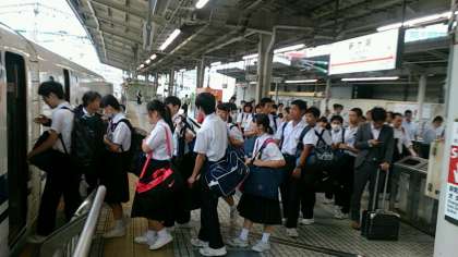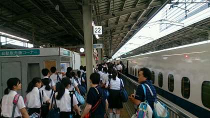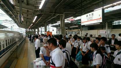 新幹線が新大阪駅ホームに到着しました。いよいよ乗車です。