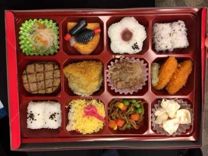 ちょっと早めの昼食です。お弁当が配られました。美味しそうですね!