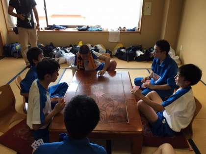 宿舎内の様子です。予定より早く到着したので、先に入浴してから食事になりました。
