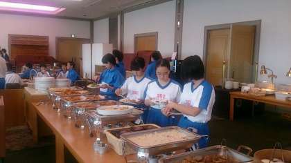 1、2組の女子も夕食会場に集まってきました。