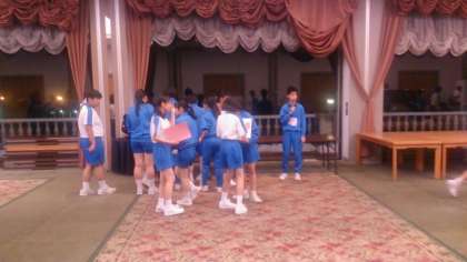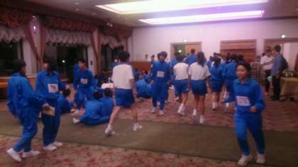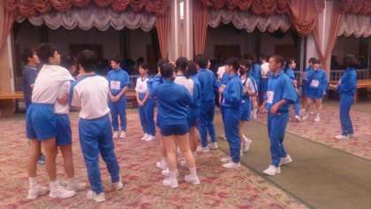 楽しかったレクレーションの後、各係打ち合わせをしています。修学旅行第1日目もあとわずか、これから就寝準備にはいります。