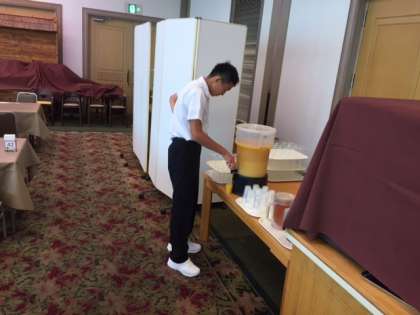 朝の集合が終わり、朝食にやってきました!