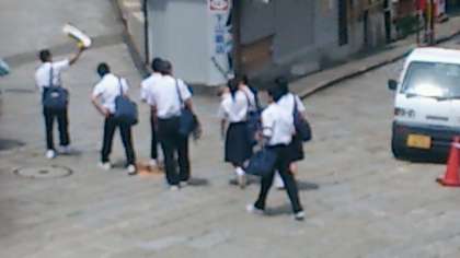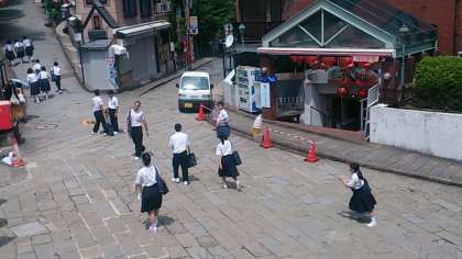 昼食会場のオランダ物産館の前を過ぎ、続々とグラバー園に向かっています。