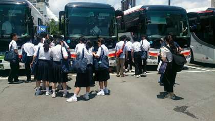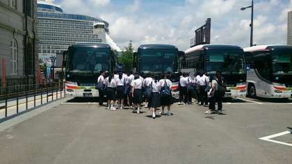 バスに乗り込みます。