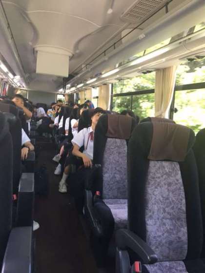 民泊に向かう3組のバスでは、またまたカラオケ大会です!