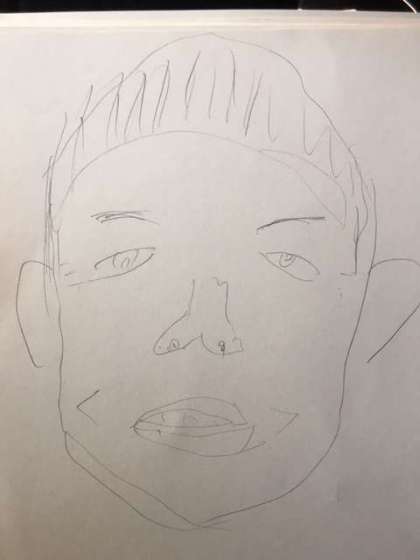 5組の車内では班対抗の担任似顔絵大会が始まりました。