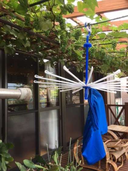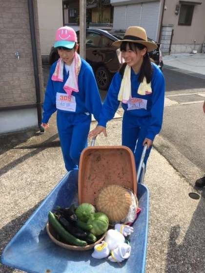 オシャレなブドウのベランダには、すでに体操服の半ズボンが干してありました。野菜もたくさん収穫されています。