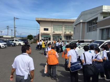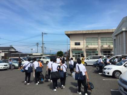 各家庭の車に乗って出発です。