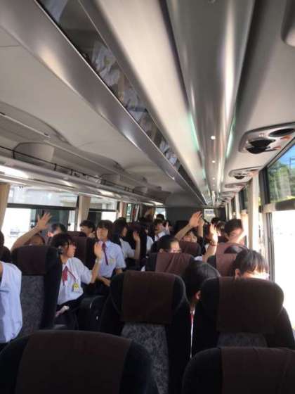 バスが出発しました。最後のお別れです。