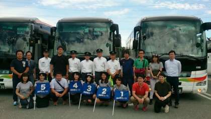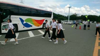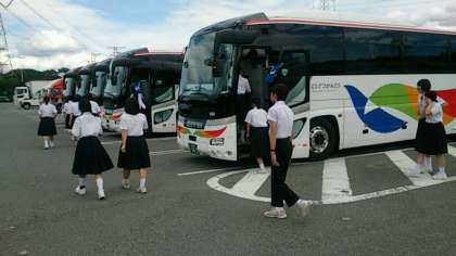 基山SAに到着しました。最後のトイレ休憩となりました。また3日間、東中生がお世話になったバスの乗務員さん、ガイドさんと先生方で、バス前にて記念撮影をしました。