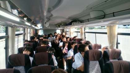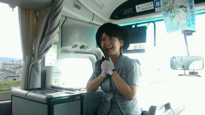楽しく過ごさせていただいたバス内、乗務員さんの安全運転とガイドさんのお気遣いに感謝です。残りもわずかになりましたが、最後まで楽しいゲームやクイズをしてくださっています。