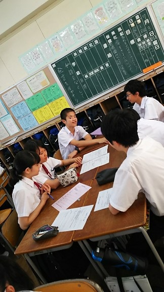 それぞれの係別会議で話し合われた決定事項を持ちより、班で共有し協力体制を確認しています。