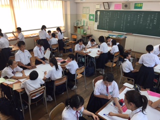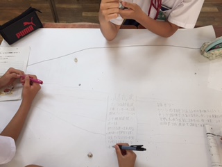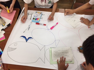 この時間はグループ学習により、「クジラ」についての新聞を作っています。