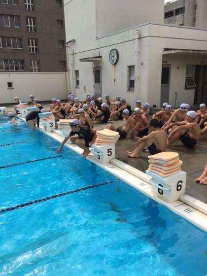 今日はクロールと平泳ぎ、背泳ぎの記録を計りました。その後は自分の課題に合わせて練習を行いました。