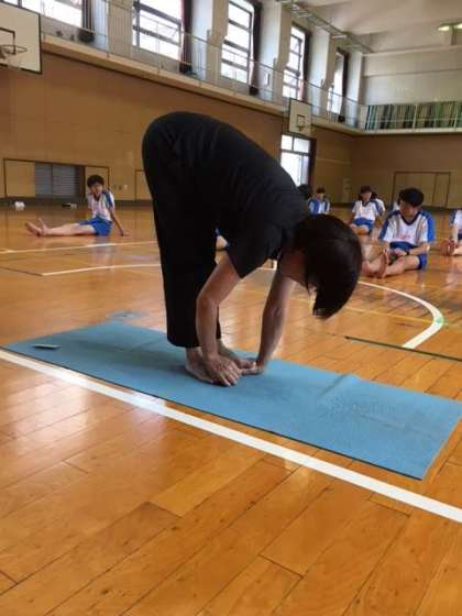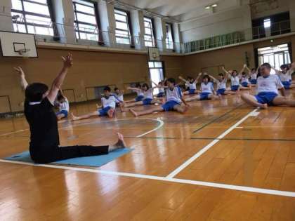 河原先生の繰り出されるポーズに驚きの連続です。生徒たちは引き込まれるように先生の真似に夢中です!