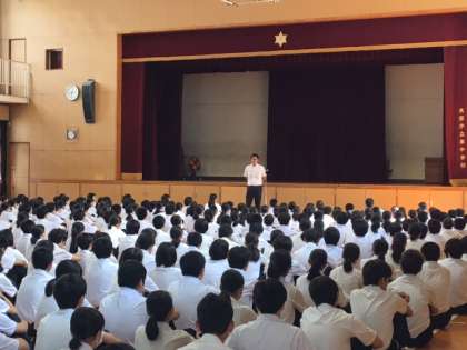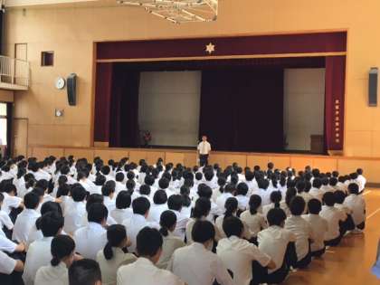 まず、生徒会から確認と協力の依頼がありました。「この間、生徒会と各委員会を中心に、全校集会を早く始める取り組みを進めています。1学期もあとわずかとなりましたが、一人ひとり意識して行動をしましょう。」