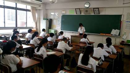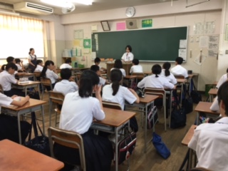 その後、係の代表者が各クラスに発表しました。課題を改善できるよう、一人一人が自覚と責任を持って、これからも取り組みましょう。1組、2組、3組の様子です。