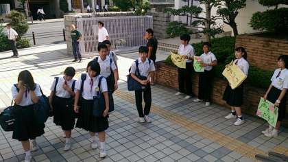 今日は朝から晴れですが、かなり暑いです。これから、ますます気温が上昇します。暑さ指数厳重警戒が発令されるでしょう。東中生の皆さん、くれぐれも熱中症予防に努めましょう。
