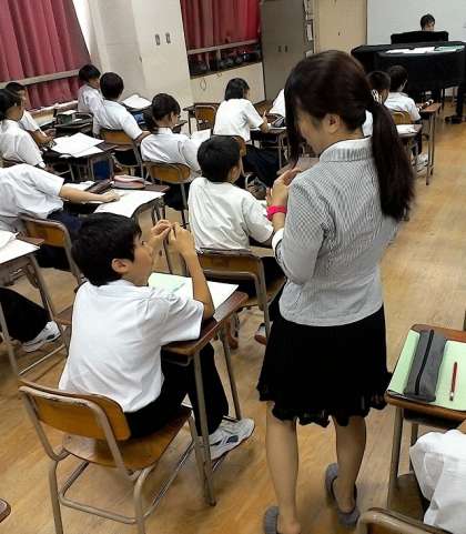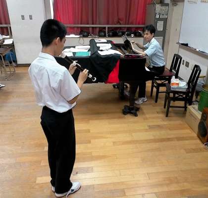 6限目の音楽では、1年生がリコーダーのテストに取り組んでいる様子を見ていただきました。