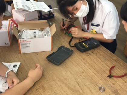 今日ははんだごてを使ってはんだ付けを行い、テスターで確認作業を行いました。