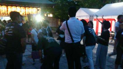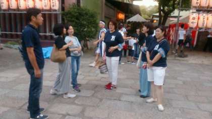 今年も夏祭りが地域の神社等で開催されます。本日と明日は生國魂神社です。PTA役員、校外指導委員会の皆さんと教員による巡視活動が始まりました。