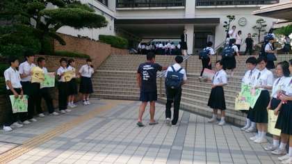 今日も暑い朝です。そんな中、部長会の皆さんが熱いあいさつ運動に汗だくになりながら、取り組んでくれています。まさに東中の誇りです!