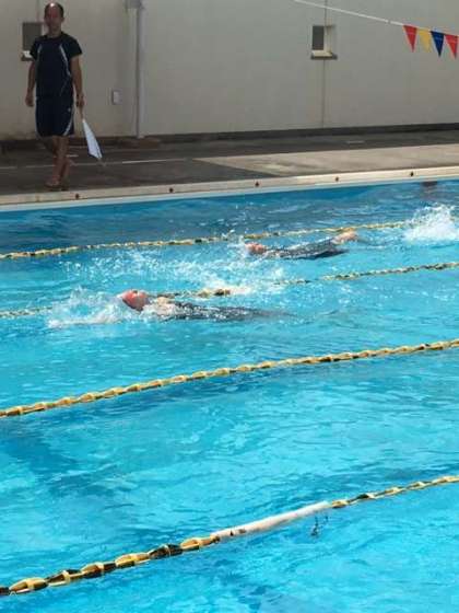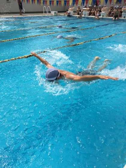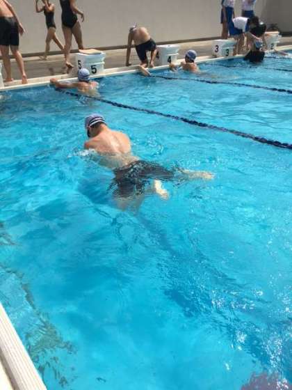今日も水泳日和です。1時間目から元気にクロール、平泳ぎ、背泳、バタフライを練習しています。バタフライも上達してきました。