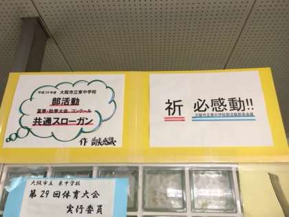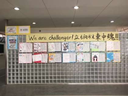 「We are challenger!立ち向かえ東中魂!」このスローガンのもと、「必ず笑顔、必ず勝利、必ず感動」できる最後の大会やコンクールに挑んで欲しいと期待しています。