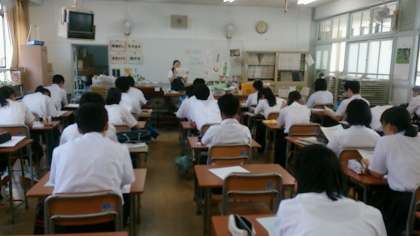 美術科の授業では、夏休みの課題について、野間口先生から説明を聞いています。「自慢のまち」をテーマにした絵画・写真コンクールに出展します。東中校区には、大阪いや日本を代表する、歴史・文化遺産、経済や産業を支える拠点がたくさんあります。「自慢のまち」を東中生の皆さんが、どんな風に表現し、作品が完成するか楽しみです!
