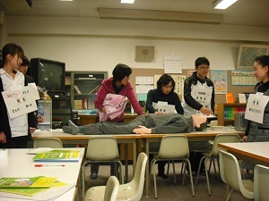 また、緊急時対応の一連の流れを、教員がそれぞれの役割に分かれてシミュレートしたものも見させていただきました。緊急時はとにかく、"生徒を1人にしない"、"経過を記録する"、"人手を呼ぶ"といったことが必要であることを認識しました。