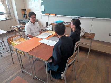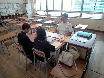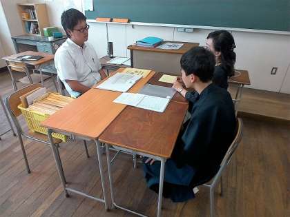 3年生の教室では、担任の先生と進路についてじっくりと話をしていました。