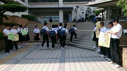 暑い朝になりましたが、東中生は、元気に登校しています!
