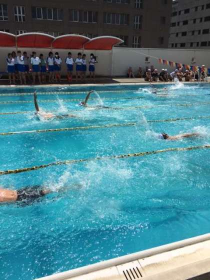 2時間目の3.4組も最後の水泳です。こちらもメドレーリレー男女ともに盛り上がっています。