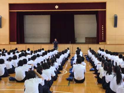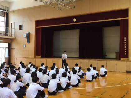 1学期最後の集会です。夏休みの過ごし方について小池先生からは学習面、田阪先生から健康面、北村先生から生活面でのお話がありました。